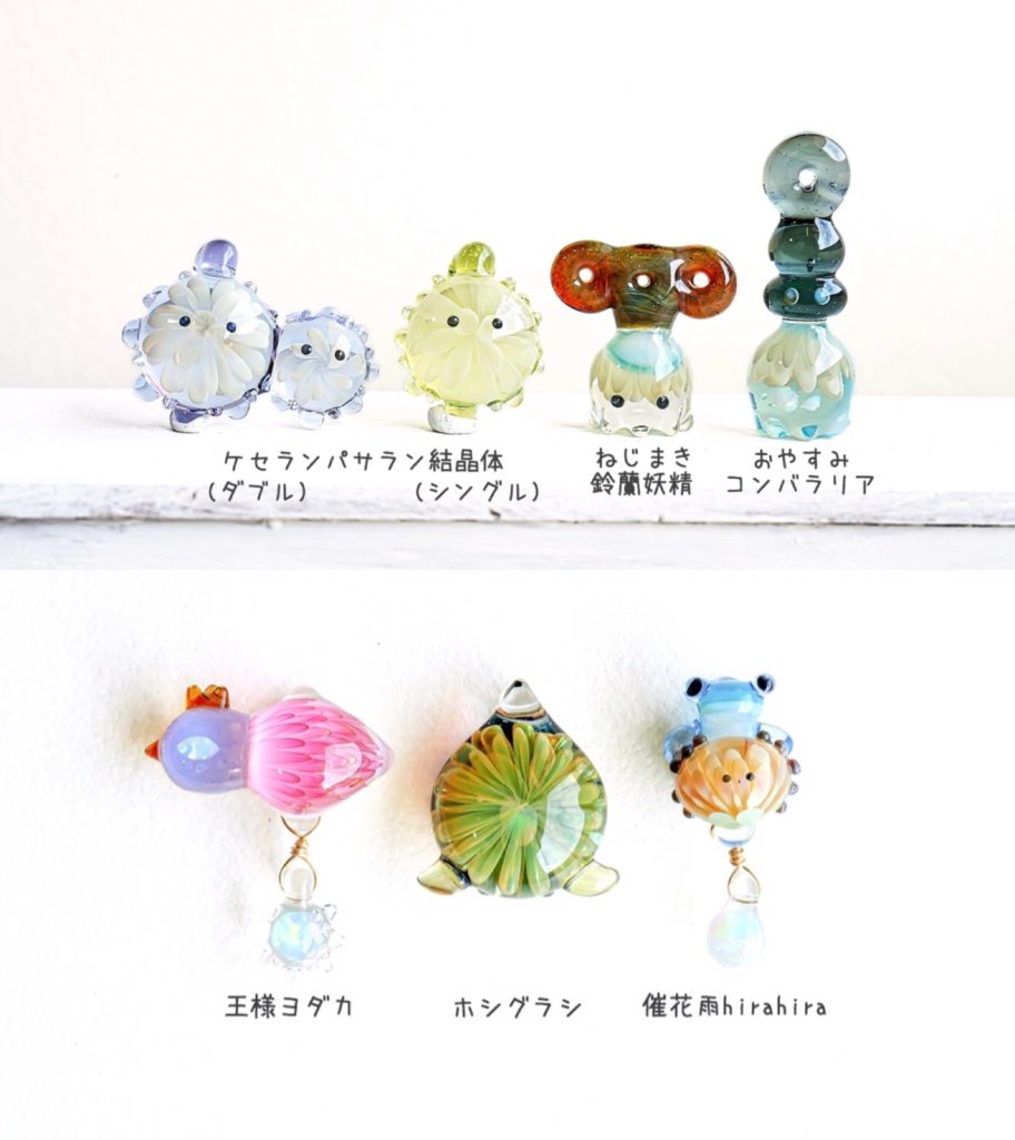 様々なガラスのネックレス、オブジェを展示販売予定です。
